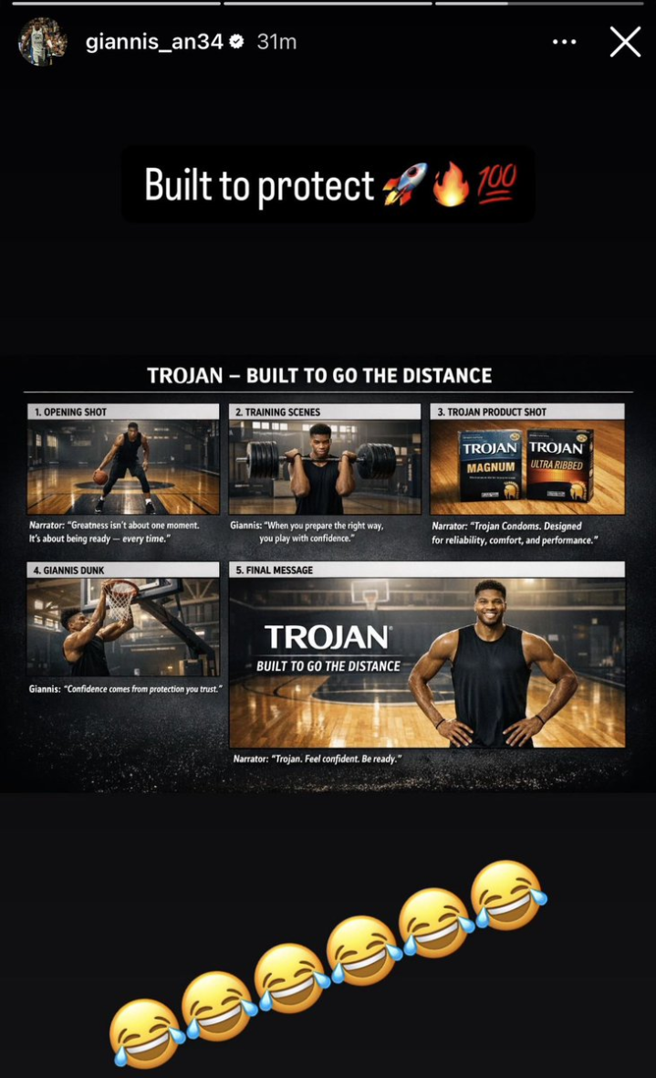 北京时间1月31日,深陷交易流言的字母哥,心情看上去很不错。他更新了IG社媒,调侃了避孕套Trojan,似乎也想接个新代言。